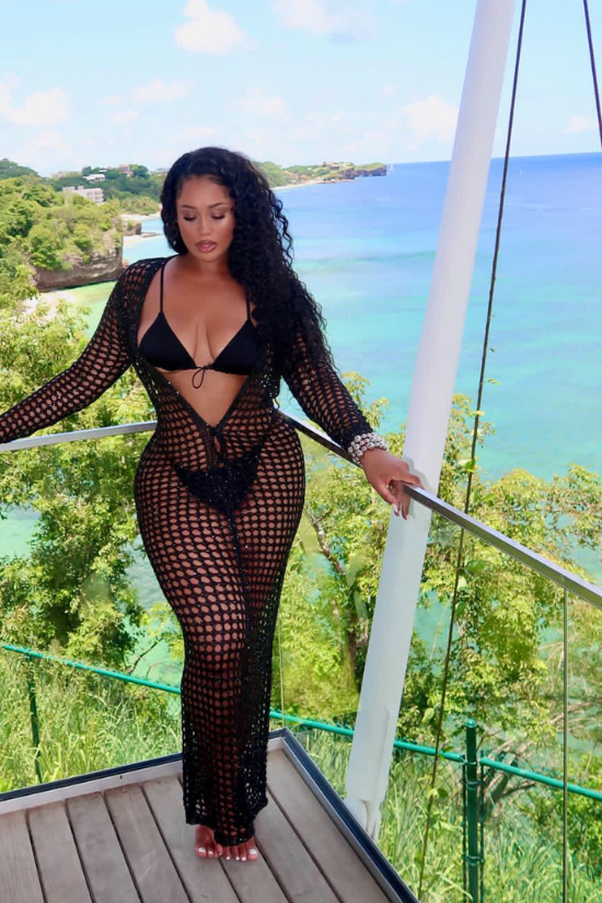 Experience the epitome of resort fashion with our sensational sequin crochet maxi dress. Featuring a daring cut-out back deep plunge V-neck, this floor-length dress exudes both style and confidence for your tropical getaway.